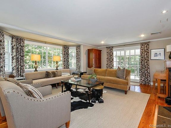 A Commuters dream This Fabulous South Wilton colonial owned by a popular local designer is new to the market. Wonderful opportunity to live minutes from town, schools, train and highways. This four bedroom, three and one half bath home is nestled at the end of a picturesque cul de sac. Loaded with style, this home is not your average cookie cutter colonial Large living room has pretty bay window, fireplace and access to a cozy screened in porch. Lovely spacious dining room perfect for entertaining. Private office/study with built-ins can serve many purposes. Eat-in kitchen features stainless steel appliances, gas cooking, two ovens, quarts counters and access to outside entertaining. Family room is steps from the kitchen. Large deck with pergola is the perfect location for dining al fresco. Enjoy making smores around the built in fire pit. Back inside you will find an inviting master suite with a spa like bathroom, three additional bedrooms, two bathrooms and a laundry room complete the second floor. Loads of storage and room for play in the lower level. Enjoy life on the cul de sac riding bikes, playing catch or walking your dog.