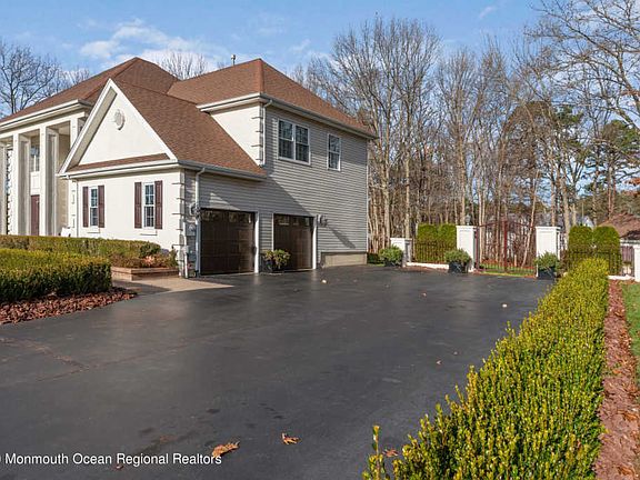First time being offered for sale! Pride of ownership is evident in this immaculately maintained 5-bedroom 3 1/2 bath colonial in Jackson's Premier at Burke Hollow. Completely move in ready. Custom moldings, gleaming rich hardwood flooring throughout. Brand new GE Cafe kitchen appliances just installed in November, granite counters, newly installed soft-close kitchen cabinet doors and new glass tiled backsplash. Two story family room with custom built-ins with newly installed high efficiency wood burning fireplace that heats up the entire first floor. Custom plantation shutters on all front facing windows. First floor guest suite with full bath tucked away for the privacy of your guests. Sun room being used as an office during these work from home days. Finished basement with a bar for