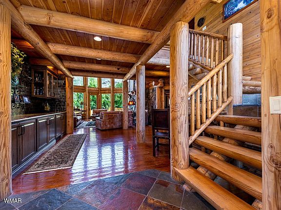 ''HARD TO REPLICATE FOR THIS PRICE'' Escape the heat and hustle and bustle of the city to this Masterpiece Mountain Escape, a luxurious, 6 bedroom 5 A1/2 bathroom custom-built 6,519SF (total with Garage and decks is 8,610 sf) Douglas Fir log cabin located in the beautiful secluded Village of Greer. Situated between the East and West forks of the Little Colorado River, this prestigious home backs up to the East fork with private river access. You will find superior craftmanship and attention to detail in this beautiful home which optimizes style, comfort, luxury, and entertainment. No detail was overlooked from full size hand hewn Douglas Fir logs, maple scraped wood flooring, heated floors, gourmet kitchen, Smart Technology for security and irrigation, state of the art Theater