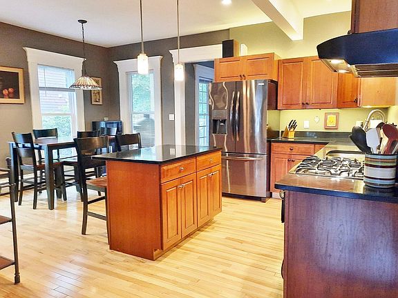With only a 5-10 min. walk to downtown, this classic 1900's New Englander is in move-in condition. It has undergone a complete renovation while maintaining its charm of yesteryear with the open concept design of today. With 3-4 bedrooms, 2 full baths, and 2400 sqft; and only 2 blocks from Main St, it is a rare find. Prepare to be impressed by the eat-in kitchen. Featuring quartz countertops, custom cherry cabinets, new LED lighting, and center island; it's a perfect blend of style and functionality. Additional highlights include a second sink cabinet and a wine cooler refrigerator. New hickory floors are found in the kitchen and the living/dining areas which share a cozy pellet stove. Flexibility is a key feature of the first floor, where the current office space can easily be transformed into a bedroom, complete with its own closet. The renovated full bath on the first floor adds convenience and versatility. Upstairs, the primary bedroom includes a spacious walk-in closet. An additional 8x11 room on this level provides the potential for room expansion or a private bath. Two more bedrooms and a tastefully renovated bath, featuring a 3/4 shower and a charming claw foot tub, complete the second floor. Other improvements have been numerous. These include the back porch/deck renovation, new front porch, full exterior painting in 2022, a new roof in 2023, an energy audit, and a portable generator hook-up.