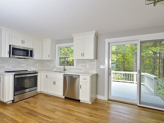 Remodeled Center Entrance Colonial Offers Brand New Eat-In Kitchen with Quartz Counters, Tile Backsplash, New Stainless Steel Appliances with Slider That Leads to Deck Overlooking the Woods, New Hardwoods Throughout First Floor, Fireplaced Family Room with Wood Beams and Recessed Lights, First Floor Laundry Room, Master Suite Features Brand New Tiled Shower, New Carpeting and Walk-In Closet, Generous Sized Bedrooms, Walkup Attic, New Heating System in 2024, Replacement Pella Windows, Septic - Title V Approved. Ideally Located Between Boston and Providence and Close Proximity to Commuter Rail, Schools and Shopping.
