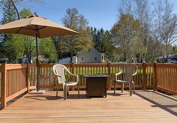 Absolutely meticulous 3 bedroom ranch! This home offers living room with propane fireplace, hardwood floors and bay window open to beautifully updated kitchen with maple cabinets, stainless steel appliances and tile floor. Other updates include bathroom, windows, deck, roof, septic system and Buderus high efficiency propane heating system! Finished lower level family room with built-in cabinets for home office, laundry room and access 2 garage under. Exterior features include fully fenced yard, dual driveway and storage shed!