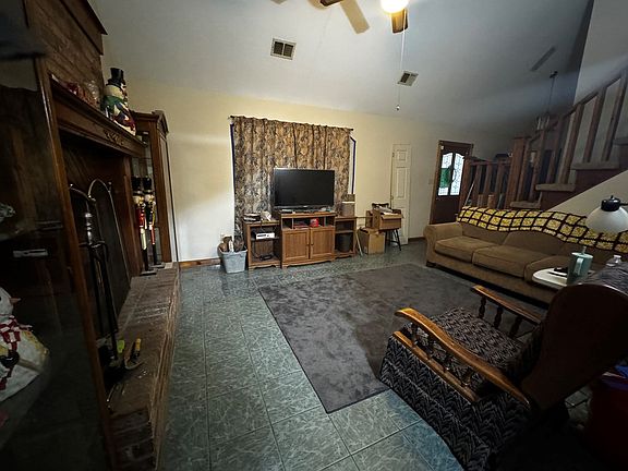 This cozy, cottage home makes everyone feel welcome. Walk up to your relaxing front porch and enter through to the open living room with cathedral ceilings and a beautiful, inviting brick, wood burning fireplace. Follow through to your kitchen and breakfast nook! This kitchen offers lots of space and storage! Two large bedrooms on the bottom floor with a full bathroom and a large loft room upstairs with its own bathroom and another room across from that one. Sheds stay and carport cover stay. This home is a precious place to make memories!