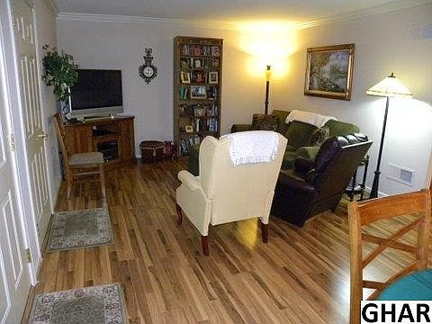 One floor living, convenient location! Bright and open living/dining/kitchen area has new floors & fresh paint. 2 large bedrooms and 2 full baths. New patio doors to 12x11 deck with retractable electric awning & gazebo view. Secure interior access to fully finished garage with insulated garage door & opener. Spacious closets, 2 linens and 175+SF of floored attic storage space. Covered front porch. Electric & gas laundry hookups. Plenty of privacy and a home warranty too!