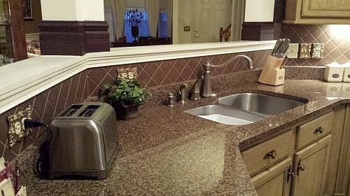 • Kitchen Features: Cabinets Stain, Breakfast Bar, Eat-in Kitchen, View to Family Room, Solid Surface Counters