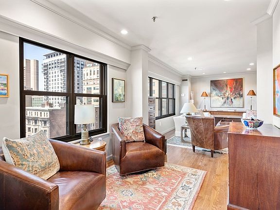 Located between the Back Bay and South End, in a green oasis on the corner of tree-lined Harcourt Street and the Southwest Corridor Park. Enjoy 24-hour concierge and direct access to Copley Square Mall and Back Bay station. This mid-rise, 9-story elevator building offers 104 homes and resales are rare. The opportunity to purchase the desirable Penthouse A is rarer still, as this home was last sold 20 years ago. Making the penthouse level so coveted are captivating views over the South End rooftops to the Blue Hills. Penthouse A, from its corner location, adds Back Bay skyline views to this panorama. From dawn to dusk, this ever-changing spectacle can be appreciated from all principal rooms of this fully renovated 2-bedroom, 2-bathroom, 1,290sf square foot residence. Completing this offer is private storage, onsite garage parking, and the possibility to purchase second (“guest”) unit on same floor. This is a Co-Op building and buyers must be approved by the Co-Op board. No dogs allowed.