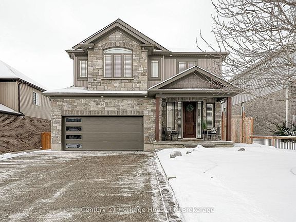 This property perfectly blends luxury and practicality, offering a lifestyle designed for relaxation and connection. Step into the backyard a true outdoor retreat featuring a stunning saltwater inground swimming pool surrounded by a durable, stamped concrete patio. The private fully fenced yard, creates a sanctuary where you can unwind and entertain. Picture yourself lounging by the pool, hosting barbecues on the spacious deck, or enjoying quiet evenings under the stars. Inside, the beauty continues with a thoughtfully designed main level. The open-concept layout fosters a sense of connection, while the centerpiece of the home a show-stopping kitchen captivates with its custom two-tone cabinetry, oversized island, and sleek modern finishes. The walk-in pantry adds function to style, and this space naturally becomes the heart of the home, perfect for casual mornings orlively dinner gatherings. The cozy living room, complete with a striking stone f/p, offers serene backyard views and invites you to relax in comfort. Upstairs, the home features 3 generous bedrooms designed for comfort and style. The primary suite is a private retreat with a walk-in closet featuring shelving and a spa-like 5-piece ensuite with a deep soaker tub and glass shower the ultimate space for rejuvenation. Downstairs, the finished basement adds versatility, offering a cozy rec room with a f/p, a 4th bedroom, and the potential to enhance the basement ensuite with a shower. Throughout the home, thoughtful upgrades like California shutters add elegance and functionality, while the double-car garage with built-in shelving enhances convenience. Every detail has been designed with care, providing a seamless blend of sophistication and comfort. At 16 Hartfield St., mornings begin with coffee on the deck, afternoons are spent pool side, and evenings bring warmth by the fireplace. This is more than a house its a home where memories are made, offering the space to grow, entertain, and live beautifully.