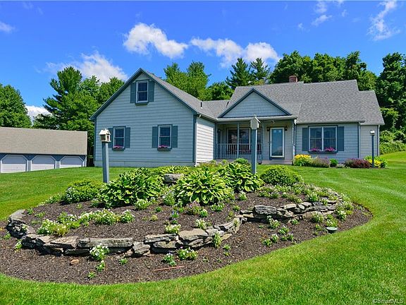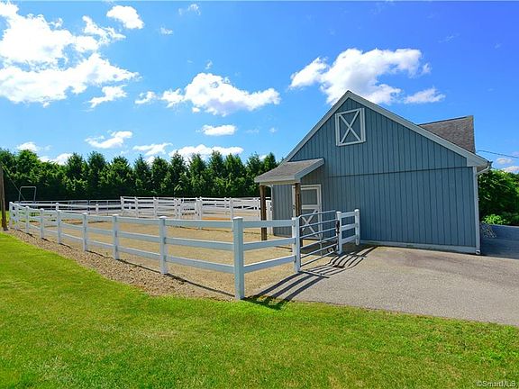 Perfect gentlemen's farm, bring your animals This privately located, meticulously maintained property, is close to schools, shopping and Route 395. With 5 plus beautiful open acres that includes pasture, a manicured lawn/sprinkler system, several working garden beds, a 3 stall 24'x36' horse barn complete with heated tack room, heated grain room, and water. In addition the property boasts a 32'x48' 4 bay detached garage/workshop as well as a hay barn. Perfect one-floor living with an open floor plan. The 2200 sq ft house with attached 2 bay 24'x24' garage features maple cabinets, granite countertops, floor to ceiling fieldstone fireplace and a large master bedroom with walk-in closets, en-suite including frameless shower and 6' soaker tub. An in-ground 20' x40' pool with cabana gives this property a mini-resort feel To save on fuel costs, the house hot water and heat can come from an outside wood burner. The open property is nicely secluded by surrounding woods, stone walls, white PVC fencing and 20' hemlocks. A 80'x200'riding ring sits at the top of the property offering stunning views of the Pomfret Hills. Perfect country living in Connecticut's Quiet Corner.