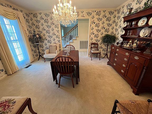 Pending with contingencies. Custom built by current owner. Separate living and dining rooms. Den with fireplace and built-in wet-bar. Kitchen with granite countertops. Breakfast area with bay windows. Large utility room. Primary suite on first floor with two closets, bathroom with shower and jacuzzi. Dual sinks. Additional full bath on main floor. Abundant closet storage.