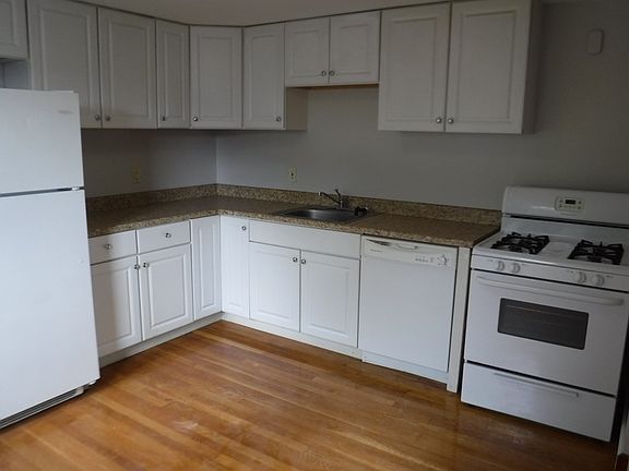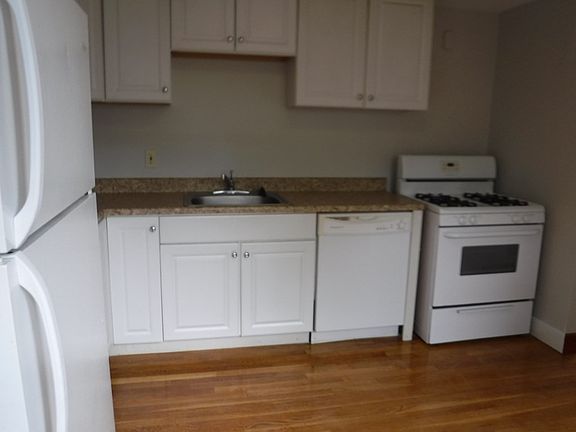 Top Floor One Bedroom, Hardwood Floors, Heated. Kitchen Upgraded with Modern Cabinets, Dishwasher, Disposal, Gas Stove, Refrigerator plus room for a Table. Generously Sized Living Room with Large Picture Window, Hardwood Floors, Air Conditioner and Closet. Modern Tiled Bathroom with Vanity. Bedroom with Hardwood Floors and Closet. Coin Operated Laundry, Parking for One Car in Driveway. HEAT INCLUDED. Tenant pays hot water (gas). Walk to shops and Restaurants, Commuter Rail, Bus. Near Routes 95/128/20/117. Mass Pike. Brandeis University. Available Now, November 15 or December 1.