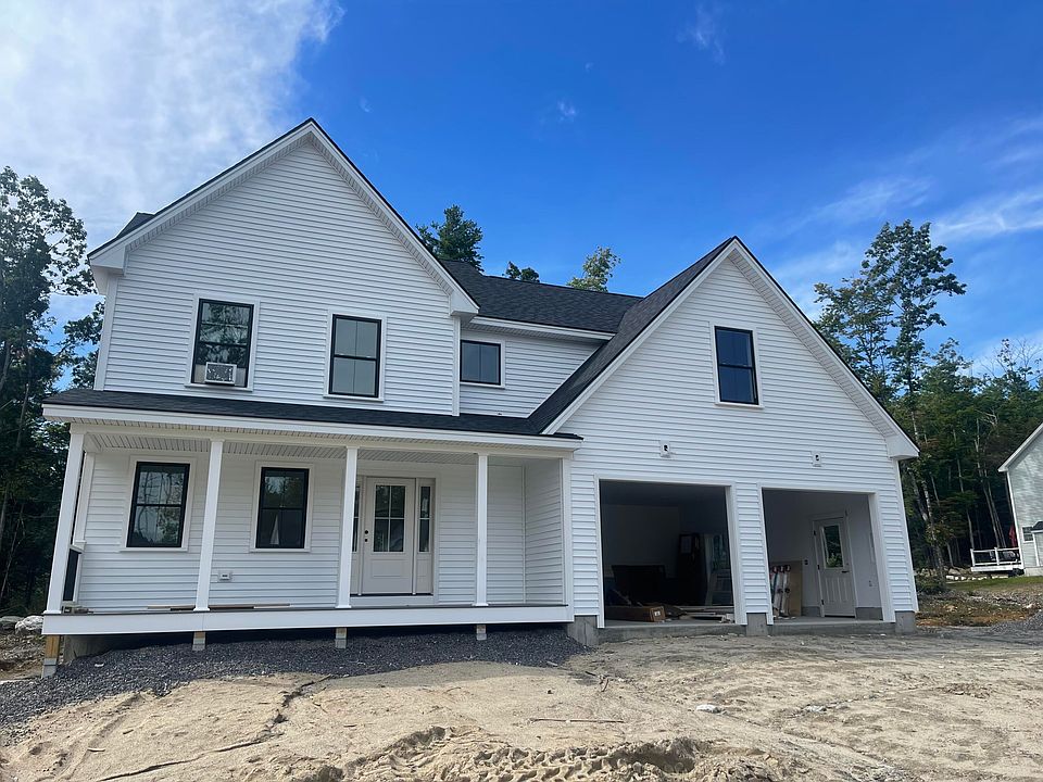 New Modern Farmhouse Built in Windham Newest Subdivision. Almost complete! This 2450 sq ft Colonial has 3 bedrooms, 2.5 baths, and a large, attached garage. Open concept 1st floor with lots of natural light. White kitchen cabinets with granite counter tops and a huge walk in Pantry. 1st floor home office or kids' playroom! Second floor features a large master suite with walk in master closet with custom built ins. Master bathroom will have a custom tile shower with glass door. This home has a forced hot water baseboard propane system. Also includes 2 heat pumps with hot/cool air. Large Laundry room with cabinetry and hangars. Beautiful Unfinished natural engineered Oak hardwood flooring. Half daylight basement with large windows for future living space. Endless possibilities for more sq ft in the basement. Great location only 3 miles to Windham schools and close to Falmouth and Portland.