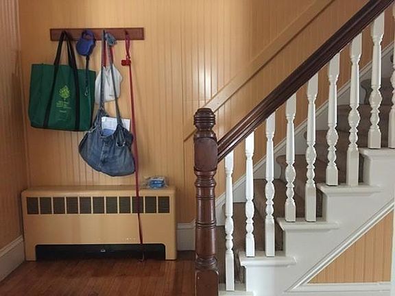 Once a 2 Family, this Classic, Colorful Farmhouse offers a whole lotta living space with 3 finished floors! The owners have just finished painting the inside, and also refinished the maple floors, which are now shining brightly. Colorful country kitchen w/ walk-in pantry gives lots of storage, there is a 1st floor "den" or office that also has a pellet stove which helps supplement the oil and can keep everyone cozy in the winter. Upstairs all the bedrooms are in great condition because they were gutted, insulated, and redone; the 2nd egress is still there should you want to convert back to a 2 family, all vinyl replacement windows, too! 3rd floor walk-up has a really big 4th bedroom great getaway for teens! OUTSIDE is amazing-established perennial gardens offers interesting plants & whimsical treasures, the re-purposed swing set made in to a seating area to enjoy the firepit. Veggie garden beds, & a garage converted to a big shed great for housing outdoor stuff! Come "BUY"!