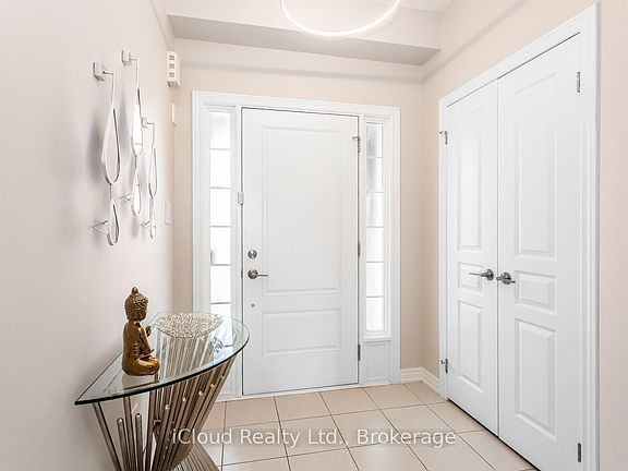 Welcome to this lovely 1815 sq ft Branthaven home in Milton's family-friendly Ford neighbourhood. As soon as you walk in, you'll notice the fresh paint, clean hardwood floors, 9-foot ceilings, and a warm, inviting layout-plus there's no carpet anywhere in the house. The home has modern pot lights throughout. The bright kitchen is the heart of the home and comes with extra cabinets, tall uppers, granite countertops, a big island/extended breakfast bar, and a sunny breakfast area. It opens nicely into the living and dining space, making it great everyday family use and weekend get-togethers. When you step outside, you'll find a fenced backyard perfect for BBQs and relaxing in the evenings, and there's currently no house behind the property, giving you extra privacy and an open view. Upstairs, you'll find three good sized bedrooms and two full bathrooms. The primary bedroom has plenty of closet space (including a walk-in and a second double closet) and a spacious upgraded ensuite with quartz counters, a soaker tub, and a separate glass shower. You also get the convenience of upper level laundry. The home also sits on a lot with no sidewalk, giving you extra driveway parking and a cleaner front look. With a covered front porch, nearby parks, schools, and a quiet setting among a small group of premium homes, this is a great place to call home.