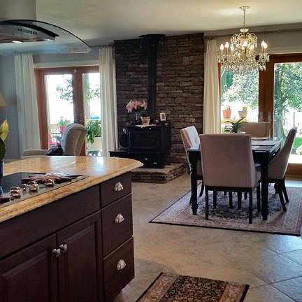 - Upgraded Countertops, Floor Plan - Open, Master Bath(s), WhirlPool/HotTub, Crown Moldings, Chair Railings, Wood Stove, Dining Area, Kitchen - Gourmet, Kitchen - Island, Combination Kitchen/Dining