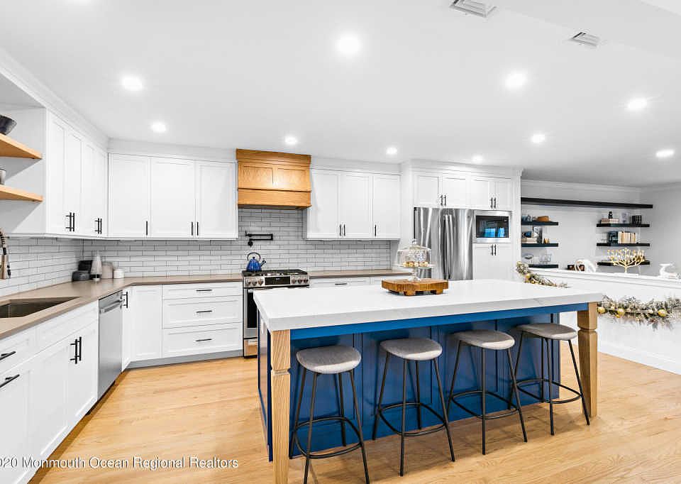 Designer remodeled EndUnit townhome in desirable SycamoreEstates, 2 blocks from train & downtown Little Silver. Wow guests w/ an exquisite GalleryWall in the Foyer before entering the jaw-dropping entertainer's open-concept layout w/ new h/w floors. Brand new showpiece Kitchen features an island w/ double-thick Quartz counters, black hardware, XO wine refrig, custom wood hood & open-shelving. Holiday meals flow easily into the DiningRoom w/ natural light & plantation shutters. Enjoy a book beside the fire in the sun-washed FamilyRoom w/ floating built-ins. The MasterSuite of your dreams feat. dramatic vaulted ceilings, WalkIn clst, & 5-piece Luxe bathroom w/ radiant floors. 2 addt'l BRs, remodeled Bath & new Laundry complete the 2nd flr. 10min to Beach, GSParkway, premier restaurants.