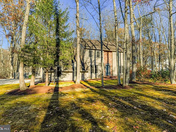 Nestled amongst tall shade trees, and situated on a 1 acre lot, you'll find this lovingly maintained 4 Bedroom 3 Full Bath Colonial that is ready for a new owner to call home. Pull up the driveway to a side entry 2 Car Garage. The brick walkway leads to the front entrance door with fluted pilaster mouldings. Notice the upgraded vinyl sided exterior that was installed in 2017. Step inside to an open hardwood floored entrance. Here you'll find the formal Living Room and Dining Room with hardwood flooring. Take note of the freshly painted rooms as you imagine placing your furnishings. Make your way to the huge eat-in Kitchen that starts with wide plank pine flooring, gas cooking, Soapstone countertops with farm sink and backsplash, wood cabinetry featuring leaded glass fronts, and an additional buffet area for entertaining. A first floor full Bath was added in 2017 featuring an exposed aggregate shower floor, wall mounted fold up seating, glass doors, and vanity with Soapstone top. The Family room with a beamed ceiling is wall to wall carpeted, and boasts a full brick wall around the warm wood burning Fireplace and spanning mantle. Here is your entrance to the Basement with high ceiling, crawl space area, and loads of storage space. The first floor continues with a Den/Game room with wide plank flooring, sliding glass doors leading to a deck walkway, rear staircase, and oversized sliding glass door to the enclosed Sun room. Check out the tongue and groove ceiling, wall to wall carpeting with hook up for a hot tub under the carpet, ceiling fan, and slider leading to the rear deck. Finishing off the first floor is a full sized Laundry room and access to the 2 car Garage. The second floor offers 4 spacious Bedrooms and 2 more full Baths. The primary Bedroom expands 26' long and features an updated Bath with new Vanity and basin. Here too is sizeable closet space and access to the Loft room that also contains the rear staircase to the first floor. This relaxing room has skylights, large built-in bookcase, and wall to wall carpeting. There are pull down stairs that lead to an attic with new insulation throughout. Outside you'll find two expansive multi level Decks, newly stoned landscaping, and a fenced yard. Improvements to know are all windows replaced in 2017. The glass in the sliders replaced 2014. In 2020 the roof and skylights were replaced over the Sun room, Kitchen overhang, and Loft area. 2020 new water softner. Septic field was updated too. Utilities are serviced by gas heat, central A/C, and gas hot water. Many more features await as you take the tour of your next home. Great schools and located just around the corner from grocery shopping and easy access to major roads leading to the Jersey Shore, restaurants, winery, and more.