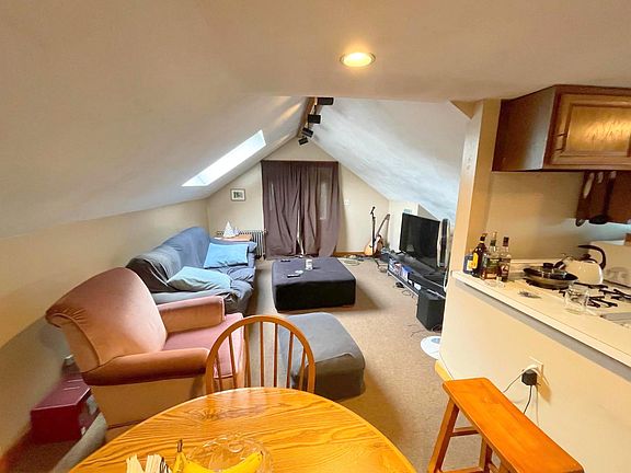 Top floor in an owner occupied three unit house. Open kitchen & living room. The kitchen has a refrigerator & stove as well as plenty of cabinet space. The living room has skylight. Tile bathroom. Bedroom with a closet AND a small bonus office space. Carpeting in the living room & bedroom. Available November 1. One month broker fee. Owner pays cold water & sewer. Tenant pays gas & electricity. No laundry on site. One month broker fee.