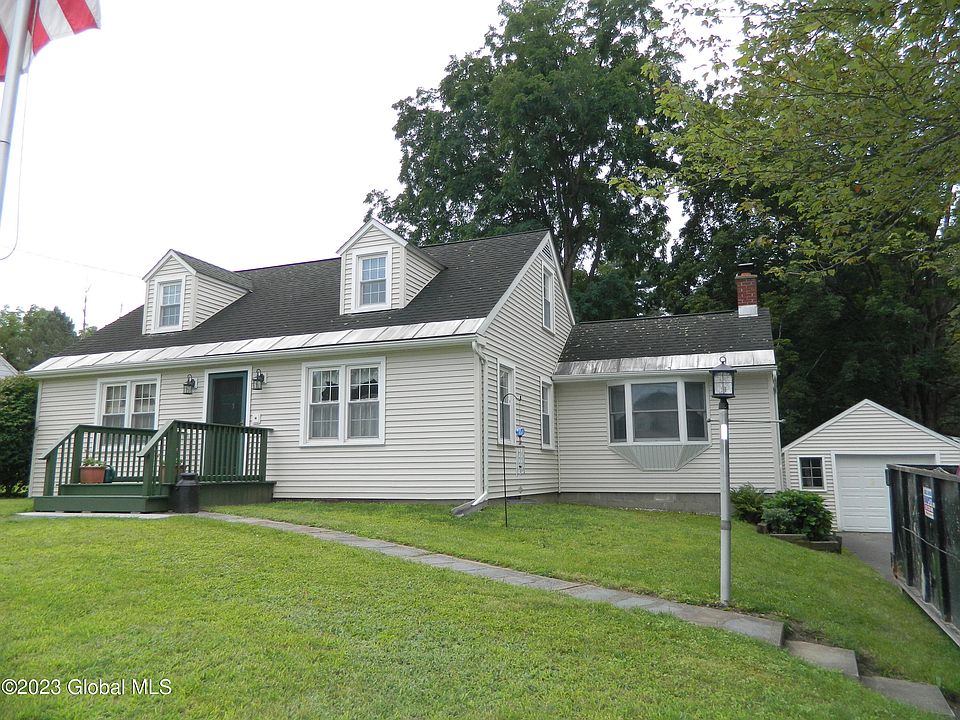 Lovely 4 bedroom NORTH GREENBUSH Cape style home nestled in a quiet neighborhood in little Red School district. Hardwood floors throughout first floor. Nice size living room. Eat in Kitchen open to dining area w/ wood stove and sitting area. Two bedrooms on first floor. Recently updated full bathroom W/ easy walk-in shower. Upstairs boasts 2 bedrooms with built in shelving & another full bathroom. Enjoy sitting on the freshly painted deck overlooking private backyard w/ shed. Detached 1 car garage w/ extra storage bay for wood or small vehicle.