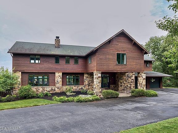 Wonderful architectural design and natural stone with masonry work. This craftsman style home has natural cedar siding. View the valley from your kitchen, your dining room, your family room and your master bedroom & bath! This quality home has recently undergone kitchen updating and master bath renovations. The home features hickory Floors, 3 fireplaces, upgraded appliances, and 7 private acres.