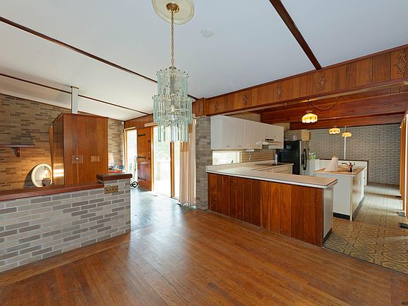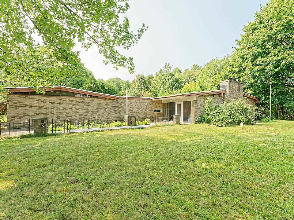 **NO SHOWINGS UNTIL OPEN HOUSE 9/27/2020 12-2*** Mid Century Modern Heaven! Come see this beautiful ranch. So much to love: original Mid Century Modern Kitchen cabinets. 3 separate patios, brick driveway, floor to ceiling windows, private yard with a huge pavillion that has electric, a built in picnic table and it's own grill/oven area for entertaining! Wait until you see the beautiful hard wood floors throughout. The enormous living room boasts a wood burning fireplace, vaulted ceilings with exposed wood beams. Motivated seller! Sold 'as is'
