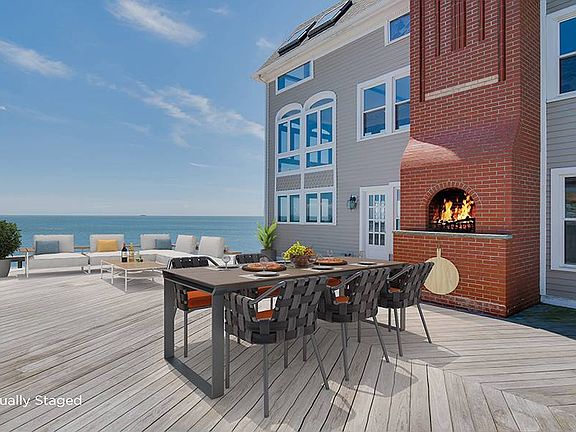 SOLD BY THE HILLYER TEAM. 860-235-3424. EDWARD@HILLYERTEAM.COM Superbly sited and perfectly oriented waterfront with dramatic angled exteriors and open interiors embracing a spellbinding pageantry of sunrises and sunsets and cruise ship views. 3000 sq ft decking and intimate courtyard dining area by water's edge overlooking a pageantry of sails, surf and sand. This treasure of tides with a flair for fun is a pleasure summit overlooking a water color display. The intrigue carries through to the interiors featuring an easy layout with large fireplaced great room, formal dining room and two master bedroom suites conducive to multi-generational living. On one of the premier and largest beaches on the Connecticut shoreline. Take long walks -- and be a beach comber from this dramatically crafted home. Spectacular views of Madison's beautiful shoreline and private Golf Course. Walk to town -- a picturesque nostalgic unhurried atmosphere -- where it seems time has stood still -- for trendy restaurants, shops, ice cream parlor, boutiques, -- and the Surf Club. Some interior photos are virtually altered --- primarily paint with the exception of the kitchen which shows some moderate virtual remodeling. Home is substantially same as photos represent, with exception of interior paint colors. SOLD BY THE HILLYER TEAM. 860-235-3424. EDWARD@HILLYERTEAM.COM