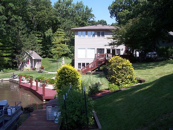 Lake Decatur is 25 steps from your door; You'll love this charming, 2 story (+walkout) home with breathtaking panoramic views of Lake Decatur. Wake up each morning to awe-inspiring sunrises in the East and when its time to cuddle up by the fireplace in the evenings, spectacular moon rises. The walkout provides direct, quick, and easy access to Lake Decatur. There are two private boat docks, a large patio, deck, and an out building we call "the cottage" for storage. - Built around 2000, this is a 2 bedroom (with possible 3rd bedroom), 2.5 bath home. The 2.5 car attached garage means you will never have to walk through the snow or rain to reach your car. There is approximately 2500 sq. ft. of spacious open rooms designed to move about in without losing that cozy atmosphere. Secluded in a private 16 acre club setting with a private lake cove, swimming platform, fishing docks, clubhouse, park, 3 acre pond, wooded trails, and there is even a small beach area. - The main floor of the home includes the living room, dining room, and kitchen, all open concept. The living room/slash dining room area is 28x18.5, the kitchen area is 12.5x11.5. There is also a closet and half bath in the hall leading to the garage.. - The second floor includes a large Master suite with a spectacular lake view and tray ceiling. Its 19x18.5; with a 19x10 bath and a 12x10 walk in closet. The second bedroom is 18x10.5; with a 8x5 bath and it also has a walk in closet which is 10.5x6. The conveniently located 9x6.5 laundry room separates the two bedrooms making them essentially sound proof of each other. - The lower level walkout, dare I say it, with yet another spectacular lake view I use for my office which is 17.5x17.5. We often use the area as a guest bedroom utilizing a pull out sofa/bed as there is a private half bath just up a few stairs. Another room which is a possible third bedroom is 11.5x9.5. There is also a mechanical/storage room and storage wall. - Exterior amenities include the two boat docks, deck, patio, walks and of course our 12x14 "cottage" - Realtors welcome Thanks for looking.