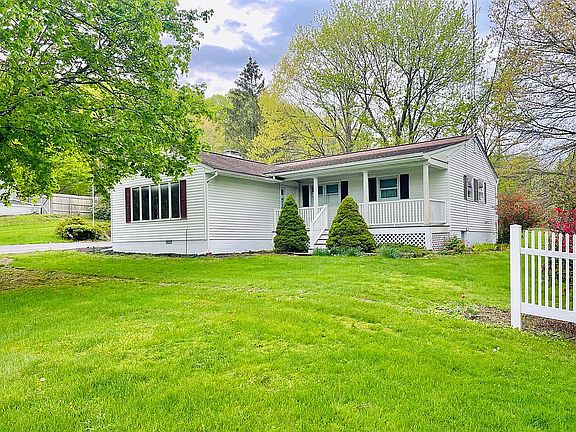 Welcome to this beautiful one level ranch style home in the Town of Washington. Old world charm on a quiet and quaint road . Home sits on a large lot. The Foyer invites you to a charming deck with beautiful views of the outdoors. Large living room with hardwood floors that open to a family size dining room for the holidays. Space in the foyer for a wood burning stove for the colder nights make this space cozy while heating the home. A railway style kitchen opens up to a dining nook that overlooks the backyard that is fenced in great for family activities like gardening and hosting parties,. Three bedrooms, all with closet and hardwood floors. Renovated basement with workshop. One large attached garage parks 2 cars and there is still room for tools. Backyard barn has loft space on the upper floor and indoor and outdoor storage, great for a handyman or contractor. Great commuter location in center of Dutchess County. Near grocery, shopping and restaurants.