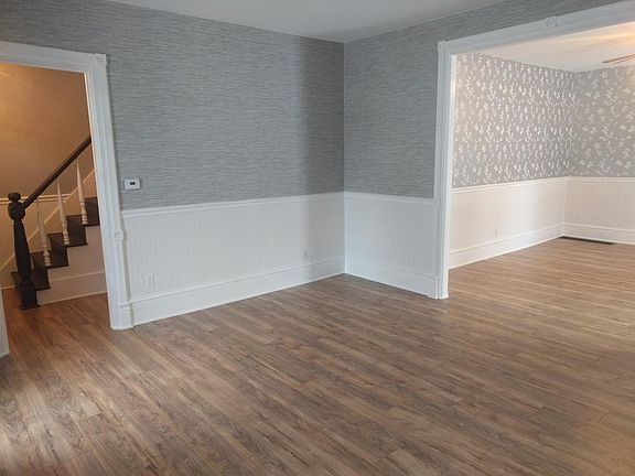 This is part of a two-story side-by-side duplex with three bedrooms upstairs. The first floor has two large living spaces, a large kitchen with new appliances, and a fully remodeled bathroom. Basement laundry hookups are available. All of the floors and walls have been recently updated. Two off-street parking spaces included. This apartment is located at the top of West Hill in Fredonia. A 10 minute walk to downtown, it is across the street from Houghton Common, close to Russell Joy Park and Wheelock Primary School. Tenant responsible for gas and electric. Landlord pays water and garbage. Minimum credit score of 600 and verifiable income of 3x rent are required.