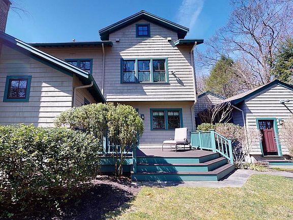 Every once in a while a home becomes available that immediately exudes tranquility, comfort and serenity. This special property appears to have been there for 50+ yrs but was custom built in 2005 with all the amenities one would expect in 2020. This solid, 2x6 construction home welcomes you with a wide open greeting porch and as you enter you will view extensive detail millwork, hardwood floors, 9 ft ceilings, greatrm w/fireplace custom inset cabinetry, open concept rooms, designer kitchen w/honed granite counters and high end appliances, breakfast area w/Fr.door access to the private deck and yard. Handsome den/office w/inset cabinetry built-ins. Wide staircase to the 2nd flr bdrms and baths and laundry room. The master suite w/walk-in closet, designer bathroom with separate water closet, Jacuzzi, large shower. Finished staircase to the unfinished third floor with ample area to finish off.This home is filled with light and mature landscaping which adds to the ambiance of this property