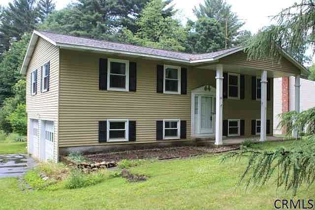 Very solid raised ranch in Greenfield Center will shine with some cosmetic updating. This 3 BR 2.5 Bath home features a master bedroom with large large closet and private bathroom. Situated on over 1 acre of land the home boasts a beautiful parcel with a 3 stall barn with electric. Other features include newer windows, a newer gas furnace, an enclosed hot tub and more.