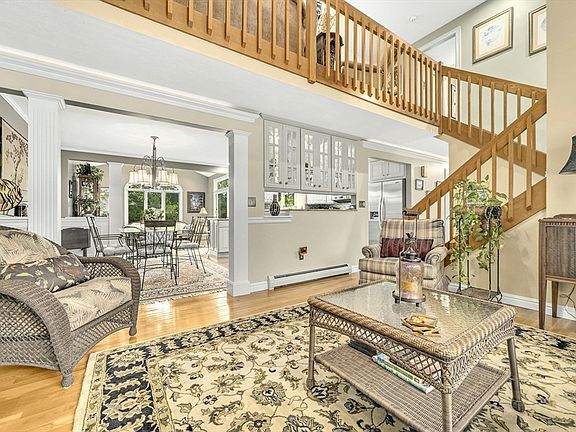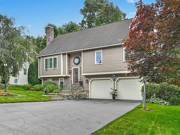 Beautifully Contemporary Multi-Level located in Miscoe Estates...Main floor boasts Living rm w dramatic vaulted ceiling/custom mantle FPLC & hardwoods open floor plan w kitchen/dining room combo....Stunning granite kitchen/stainless appliances/recent painted cabinets/bevel glass subway tile backsplash/double tier breakfast bar & hardwoods...adjacent dining room/hardwoods leads to gorgeous sunsplashed sunroom w electric skylites & sliders to impressive double tier composite deck that finishes off to private stone patio......Main floor finishes off w bedroom w hollywood bath, walk in closet & 2 guest bedrooms....Second floor has open loft overlooking living room.....Main bedroom w double Quartzite vanity...tiled tub shower ,Jacuzzi & walk in closet....Flexible finished LL w exercise/den/office/1/2 bath/laundry...Professional landscaping & plantings.....Home offers desirable blend of style, comfort & functionality...Sellers pride of ownership ! Minutes to Mass Pike & major routes