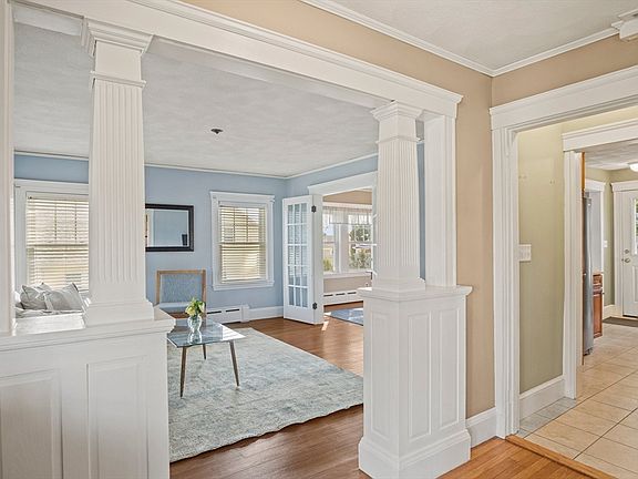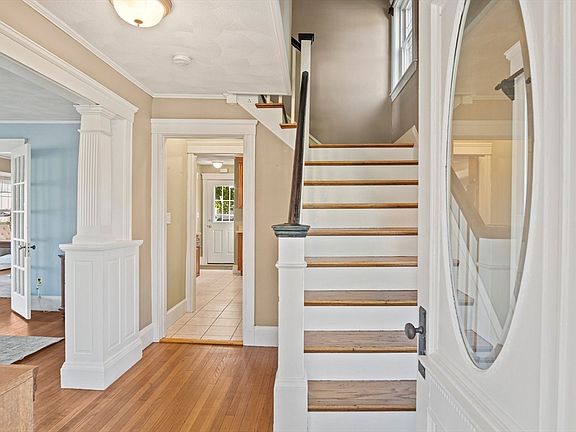 Situated on a quiet cul de sac surrounded by charming homes and new construction, this 4 bed 2 bath colonial offers updates and a spacious floorplan. Enter through the front 3 season porch or drive directly up to the backdoor before entering the main living level where you'll find an updated kitchen with full bath, a formal dining room with built in hutch and living room with plenty of natural light and craftsman details. Hardwood flooring throughout the home leads from the pretty front foyer up to the second level where you'll find a full bath, 3 bedrooms and a sun filled office. The finished third level is home to the 4th bedroom with ample storage space. The back yard features a lovely patio with fire pit, plenty of green space and a young Reeds Ferry shed. Enjoy the home's central location which allows for easy access to Woburn center and major highways.