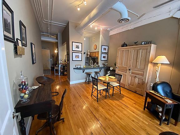 Condo for sale in historic Tannery Row Lofts located in the Heartside neighborhood. One block from Van Andel, numerous restaurants, and other entertainment venues. Special industrial features include exposed brick walls, original hardwood floors, concrete counter top, snack bar, new stainless steel appliances, and extra high ceilings with exposed duct work. A murphy bed is also included for overnight guests. Large bathroom with tiled floor and shower. The bedroom offers ample closet space with custom built in shelving. Two year old furnace and newer water heater. Laundry is directly across the hall. Other features of Tannery Row include gated parking lot with designated parking space, a fitness center, new rooftop deck with panoramic views of the city, and your own gated storage area. Enjoy this stylish industrial loft located in the middle of the best that the city has to offer.