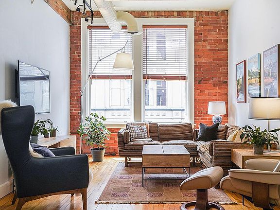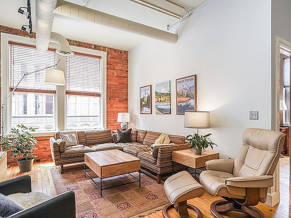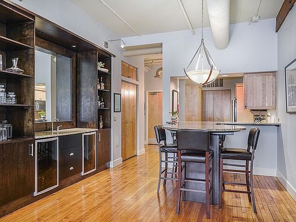Hip, loft-style living in the heart of Grand Rapids! A rare opportunity to rent a home in the classic Tannery Row building, this condo features an open floor plan with a granite bar-height dining table connecting the kitchen to the living room, with custom built-in bar and wine refrigerators. The kitchen is updated with granite counters and stainless steel appliances. Classic industrial features like exposed brick, high ceilings, and lovely hardwood floors make this charming condo a must see. Includes a dedicated parking spot in a gated lot adjacent the building. Shared laundry facilities on each floor. One block from Van Andel, numerous restaurants, and other entertainment venues. Other features of Tannery Row include gated parking lot with designated parking space, free WIFI, a fitness center, new rooftop deck with panoramic views of the city, and your own gated storage area. No smoking allowed. Water, parking, and WIFI is included, renter pays electricity. Lease duration is minimum of one year. Deposit equal to one month of rent is required.