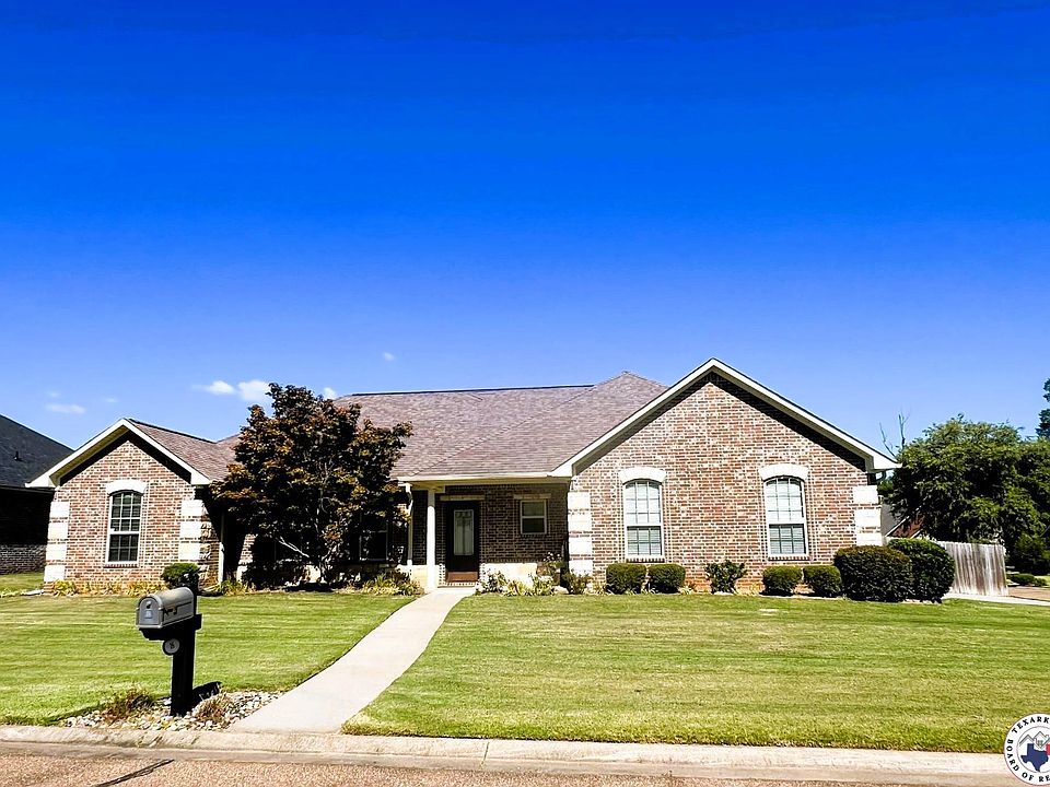 Super clean and move-in ready, this charming 3-bedroom, 2-bath brick home sits on a beautifully landscaped corner lot, complete with a sprinkler system to keep the yard lush during those hot Texas summers. The garage features a convenient keypad entry for those times you donGt have your key or remote. A privacy fence encloses the backyard, which includes both a walk gate and a double gate for added accessibility. Inside, the split bedroom layout offers a spacious main suite with a raised box ceiling. The private bath features separate vanities, a jetted tub, a large walk-in shower, and a generous walk-in closet with built-in shelving. The kitchen is well-appointed with stainless steel appliances - range, dishwasher, microwave-vent hood, and refrigerator - plus a breakfast bar, pull-out trash can, and a walk-in pantry. Adjacent to the kitchen and breakfast area is a bright sunroom that opens to the beautiful, private backyardGperfect for relaxing or entertaining. On the opposite side of the home are two guest bedrooms separated by a roomy guest bath that includes ample linen storage.