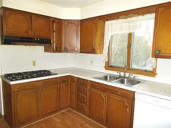 This 3-bedroom/1.5-bath ranch is located in a quiet Fredonia neighborhood. It features solid oak kitchen with 5-burner stovetop; large living room with wood-burning fireplace; hardwood floors throughout; full wall built-in closets and drawers in hallway; vinyl sided; full dry basement with French drains; private backyard; stove, refrigerator, dishwasher stay. Selling lower than full market value, price reflects needed repairs. Call soon.