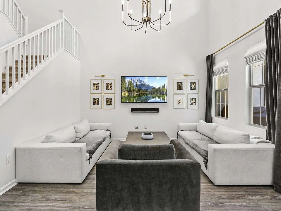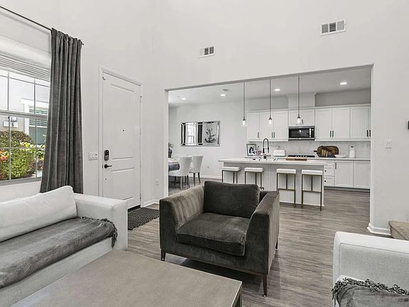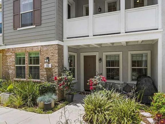 Step into the vibrant Sage Community nestled within the coveted Rancho Mission Viejo community! This exquisite home encompasses generous living space upgraded to perfection boasting 3 bedrooms, 2½ bathrooms and a 2-car garage with epoxy floor offering privacy – no neighbors above or below. The open floor plan on the lower-level presents soaring vaulted ceilings with modern light fixtures, seamlessly integrated with the kitchen, dining and living areas. This spacious gourmet kitchen with white cabinetry, white quart counters and stunning Italian tile backsplash offers a huge center island allowing for plenty of seating. The kitchen has upgraded satin-black hardware and modern brushed gold fixtures as well as a desirable built-in wine refrigerator. Included on the lower level is a dining space as well as an amazing coffee bar with an additional refrigerator for cold drinks, marble-style quartz counter with open floating shelves on the tile accent wall to showcase your modern décor along with a pair of brushed gold light wall sconces. In addition, there is a half bath upgraded with gold fixtures creating a sophisticated and functional downstairs living space. The lower level offers direct access to the 2-car garage allowing for ease of transporting groceries directly into the kitchen area. Ascend to the second floor to discover a master suite with attached balcony and two additional bedrooms, laundry room , full bathroom with dual sinks and dual bathtub shower.