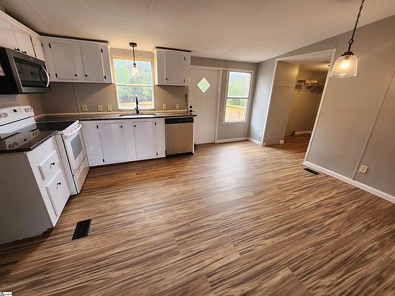 Welcome home to this charming 3-bedroom, 2-bath mobile home nestled on a serene 1-acre lot in a peaceful cul-de-sac. Enjoy the tranquility of country living while being just minutes away from the historic and picturesque downtown Fountain Inn. This home features an open floor plan with laminate flooring throughout, making it perfect for easy living and entertaining. Relax on the covered front porch or host gatherings on the spacious back deck. With its convenient location and quiet surroundings, this property offers the best of both worlds. Don’t miss out—schedule your showing today!