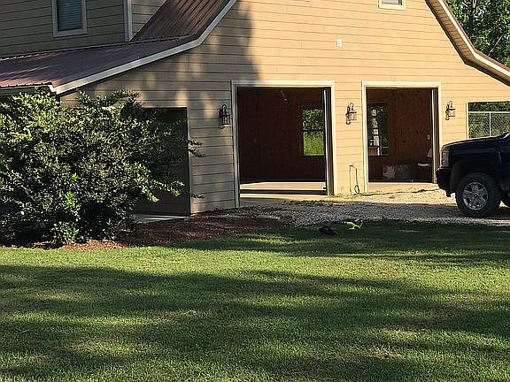 2 bedroom, 1 and a half bath open floor plan with wood burning fireplace and over sized two car garage with storage room and 3 cleared acres of land.