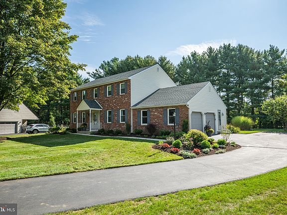 Just minutes from the heart of Doylestown Borough, discover the highly sought-after community of Old Mill Estates. With only 68 distinctive homes, this cul-de-sac neighborhood is known for privacy, charm, and convenience. Welcome to 16 John Dyer Way, a classic Colonial that blends timeless details with modern comfort. Step inside the center hall and choose between a sunlit sitting room or an elegant formal dining room, both enhanced with crown molding and chair rail accents. The heart of the home is the spacious kitchen and breakfast room, featuring maple and glass cabinetry, granite counters, a second prep sink, and a bay window that fills the space with natural light. Just steps away, the family room invites relaxation with its brick wood-burning fireplace, raised hearth, and direct access to the expanded Trex deck—perfect for entertaining and overlooking a private backyard with mature pines, perennial gardens, and storage shed for all your lawn and garden tools. The first floor also offers a convenient mudroom entry, laundry area, and powder room. Upstairs, find four generous bedrooms, including a primary suite with walk-in closet, skylit ensuite bath, soaking tub, and stall shower. Three additional bedrooms share an updated full hall bath. The partially finished basement expands your living potential with space for recreation, storage, and utility systems which include both water treatment and softening systems for the home's private well. An extra large two-car garage with inside access completes the picture. With public sewer, a prime location, and a home ready for your personal touches, 16 John Dyer Way offers the perfect balance of character, space, and value. Come see why Old Mill Estates is one of Doylestown’s most desirable neighborhoods—schedule your private tour today!