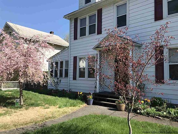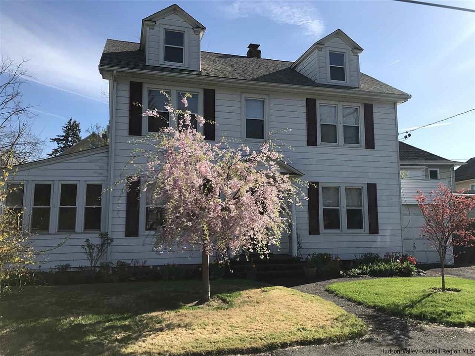 Enjoy the Kingston Lifestyle in this 1925 two Story 3 bed 2 bath Colonial Home. Quiet neighborhood, walking distance to Stockade District and 15 minute walk to Trailways Bus Station. Beautiful hardwood floors throughout with tile in bathrooms, kitchen and family room. French doors, lovely arched architecture with new appliances in the kitchen. House has beautiful landscaping all around with weeping cheery tree, abundance of bulbs and many perennial plants abound. Multiple fenced in garden vegetable beds. Newer roof, windows and 200 amp electrical service. Wonderful property for full time residence and weekend buyers.