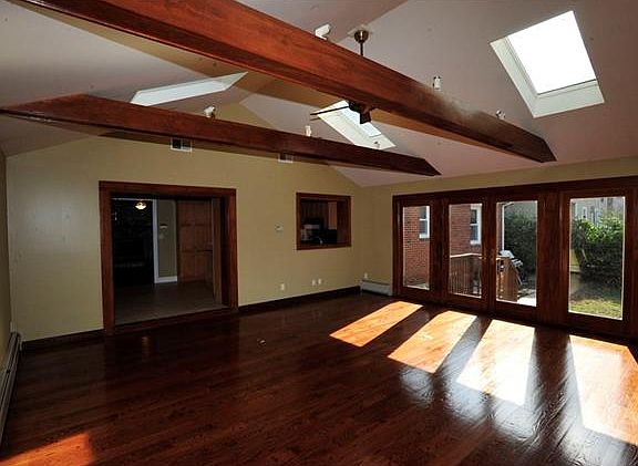 Comfortable living in this ranch style home, with a well-equipped chef's kitchen complete with granite counters, stainless steel appliances and gas cook-top. Kitchen flows into the large family room with its beamed cathedral ceiling and natural light flooding in from all sides. French doors lead onto the new wrap around deck and the expansive level & private back yard with new fencing. Tremendous space for outdoor entertaining and play. Warm inviting living room, with its large stone-faced fireplace. Master bedroom with an updated master bath and two additional bedrooms sharing the updated hall bath complete the well-situated living layout. There are gleaming hardwood floors throughout. The cul-de-sac location is close to transportation, shopping, and dining.