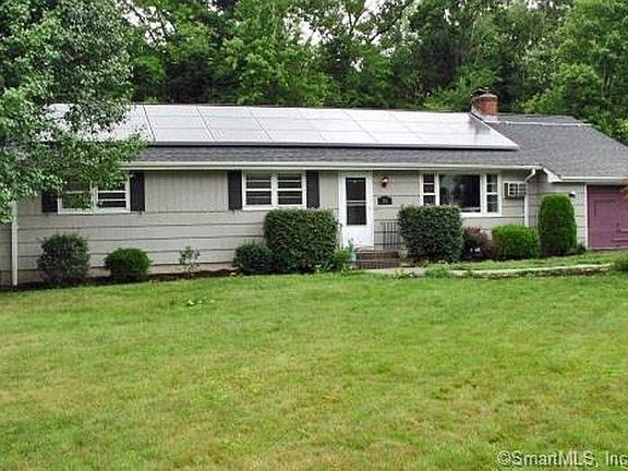 Open flow living room with cathedral ceiling great light and spacious bedrooms wood floors and fresh paint throughout. New carpet in finished basement. Master bathroom and walk-in closet. Private 1/2 acre fenced yard with trees in the back and brick lined fire pit. There is a lot of unfinished basement space too for storage a pool table or musical instruments. Minimal electric bill thanks to the solar panels. No Water bill thanks to a well. House is very energy efficient with a pellet stove new hybrid heat pump electric hot water heater and nest smart thermostat. Minutes from the award winning Wintonbury golf course. Pets ok (+$50/mo). Tenant pays for heating oil, electric, internet/phone/cable. Lawn care/snow removal included.