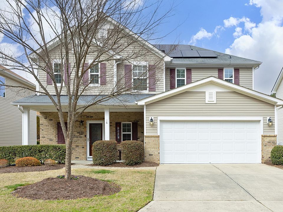 Welcome to this distinguished home within the esteemed Belcrest community, nestled in the highly desirable southwest Durham area and thoughtfully crafted for immediate comfort and modern living. Step into a graceful two-story foyer that opens into an airy, open-concept layout with engineered hardwood floors that flow seamlessly across the main level. The inviting living room, featuring a cozy gas fireplace, offers tranquil views of the expansive backyard. The kitchen is beautifully appointed with granite countertops, a tasteful tile backsplash, a breakfast bar, and stainless steel appliances. A spacious dining area nearby is perfect for gatherings and entertaining. The large laundry room and pantry enhance convenience, providing enclosed storage, a granite countertop, and ceramic tile floors, with a washer and dryer included. Outside, enjoy the peaceful ambiance of the large backyard from a private patio,equipped with a stainless steel Charbroil grill connected to natural gas, or unwind on the charming rocking chair front porch.This home features energy-efficient upgrades, including two Ecobee smart thermostats and an owned solar energy system. Upstairs, LVP flooring spans across a generous family room and all additional spaces. The master suite is a serene retreat, complete with a walk-in closet, ceiling fan, and a private bath with a dual-sink vanity and walk-in shower. Two additional bedrooms offer ample closet space and ceiling fans for added comfort .Completing this exceptional property is a two-car garage equipped with an EV outlet, a Tesla Wall charger, additional shelving, and driveway parking. Front entrance overlooks nicely landscaped retention basin. Convenient to Duke, UNC, RTP and shopping and Restaurants at nearby Streets at Southpointe. Walk from home to access the nearby trailhead of American Tobacco Trail. Owners association dues include mowing lawn. Free up your weekends!! Pre-approval letter with offer. All furniture and personal items to convey with sale