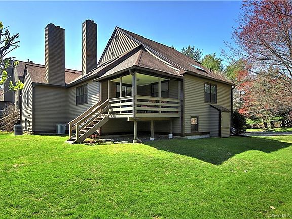 You'll find this light, bright end unit Condo home at the desirable Northbrook Complex with it's wooded park-like setting of rolling terrain and ponds on over 150 acres. This immaculate Windsor with covered corner porch looks out to open space and woods. Upon entering notice the raised panel moldings throughout the entry. This popular model features a dramatic open Dining & Living Rooms w/vaulted ceiling & skylights, wood burning Fireplace with decorative mantle and sliders to the covered porch. For 3 seasons this exterior space lends to the open floor plan on the main level. The eat-in Kitchen includes updates of granite counters & backsplash, SS appliances including double oven range, tile flooring and breakfast area. There is a large BR/Den on this level with vaulted ceiling and skylight adjacent to a full bath. The upper level includes the MBR Suite with walk-in closet and convenient loft area open to below great for an office or relaxing nook. The MBath has been fully remodeled with white vanity & granite top and a large tile shower with built-in bench & niche in the grey tones in demand today. Then down to the finished lower level rec room and access to the laundry area, mechanical room and oversized 1-car garage with room for storage. With it's 2 pools, tennis courts and hiking trails what more do you need. This home also includes newer HWD flooring on upper level, vinyl windows and slider, younger mechanicals, updated Kitchen and Master Bath...truly a move-in home!