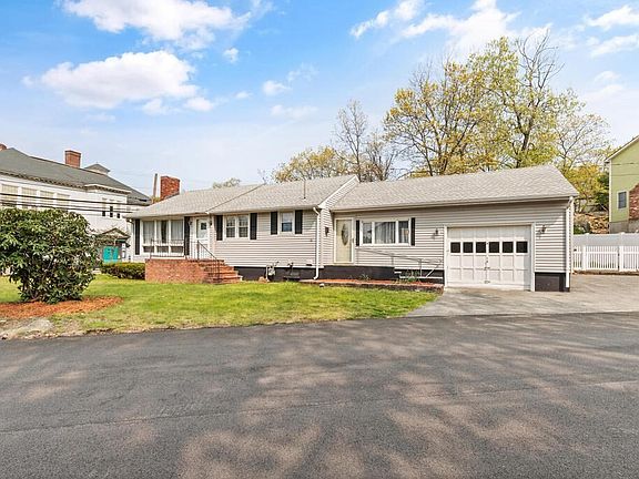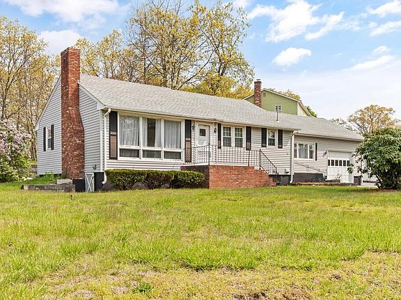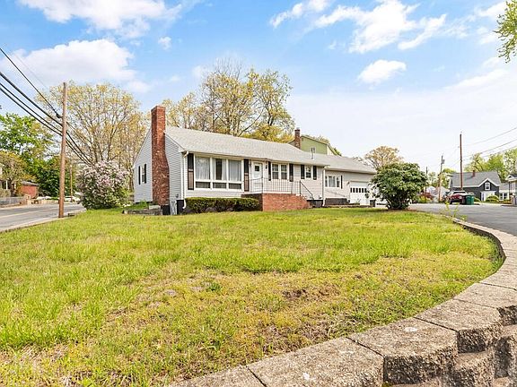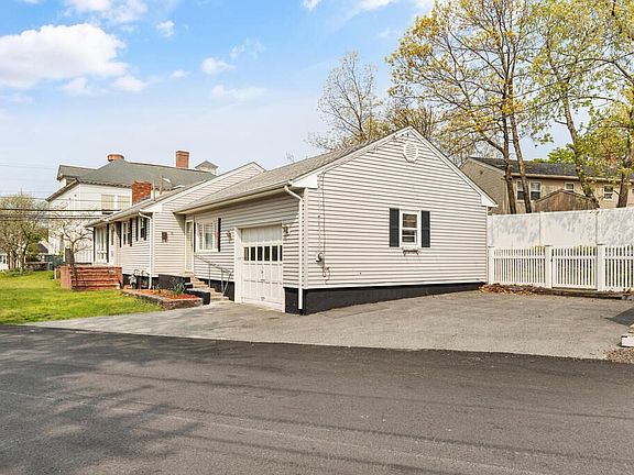 Sweet ranch on corner lot minutes to highway! Enter through the front door and you will find a bright living room with fireplace, hardwood floors, and beamed ceilings, large eat in kitchen with ceramic tile floor, primary bedroom is bright with skylight and ceiling fan, second bedroom also very good size both with hardwood floors, spacious family room with bar area, wood stove and sliders to deck. Just in time to enjoy your NEWLY fenced in yard for the summer. First floor laundry, One-car garage and Central A/C. This 5 room, 2 Bedroom / 1 Bathroom is truly a perfect starter home or condo alternative. Come make this one your own.