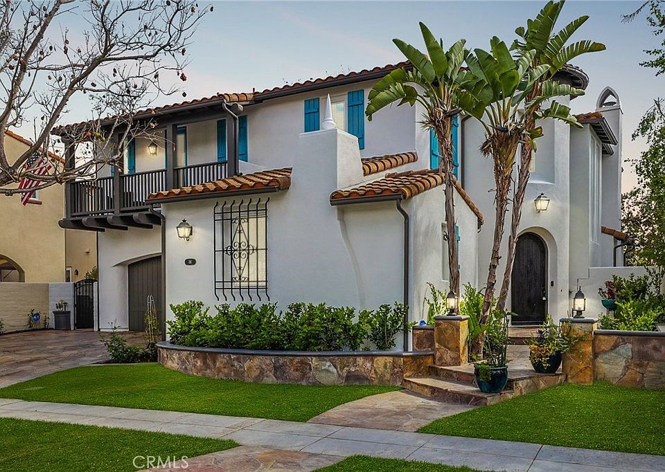 The master suite is a luxurious retreat, featuring a master bath with dual sinks and vanity, a soaking tub, separate shower, and substantial walk-in closets. The home also includes a front balcony off the secondary bedrooms with a Jack & Jill bathroom.