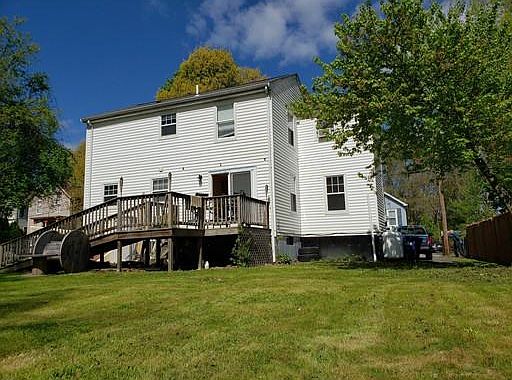 Bring the kids!! Great yard and room to grow. This colonial has hard wood on the first floor, two full baths, very nice sized bedrooms and a deck overlooking a nice back yard. The exterior is vinyl siding and the interior is freshly painted. Interior photos coming soon. Don't wait!!