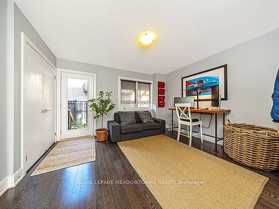 Stunning Executive 3 Bedroom, 3 Bathroom Townhouse with approximately 2100 Sq Ft. Of Exceptionally Finished Living Space. The Main Level Offers Dark Hardwood & Ceramic Flooring, a Spacious Foyer, Powder Room, Laundry & Family Room With W/O To Covered Patio W/Cedar Stained Privacy Panel and Garage Access. The Open Concept 2nd Level Is A Show Stopper W/ 9' Ceilings, a Huge Sun-Filled Great Room also W/ Gorgeous Dark Hardwood, Complimented By Tasteful Ceramic Flooring In The Well-Designed Kitchen. Walk out from the kitchen to a gorgeous deck equipped with Glass Railings and Natural Gas BBQ line. The Upper Level hosts a Primary Bedroom with 3 piece ensuite and walk in closet. Two additional well sized bedrooms complete the level. The finished basement is a welcomed bonus in this beautiful home allowing for added living space to suit your needs. Steps to the park and a short walk to Go Station.