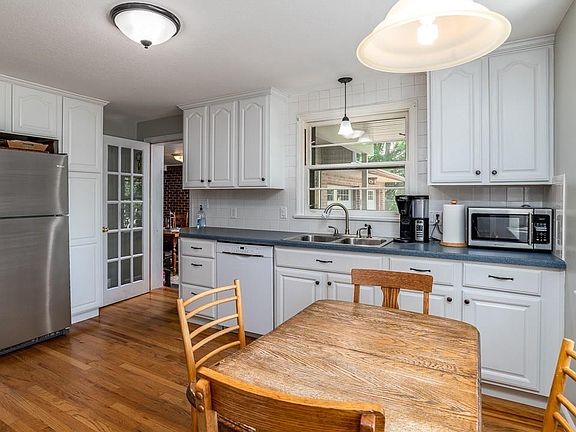 This cute cape has so much to offer its new owners! The main living level has two entrances, the first leads you into a breezeway/ dining room that features exposed brick, has an electric stove for heat and stone flooring. As you enter through a french door into the bright and cheery eat-in Kitchen, you will find hardwood floors and a newer stove and refrigerator (2020) and dishwasher, it also features and a generous sized pantry. The Living Room has beautiful hardwood floors and a wood burning fireplace and connects you to a sunroom which can be used for an array of functions with a concrete floor and exterior access. The smaller 4th Bedroom is on the first floor and is currently being used as a playroom. Upstairs , the Master Bedroom has hardwood floors and ample closet space. The other two Bedrooms have wall-to-wall carpet and electric heat. Some additional features include a new roof on the main house and sun porch (2020),new oil tank (2020), new hot water tank (2019).